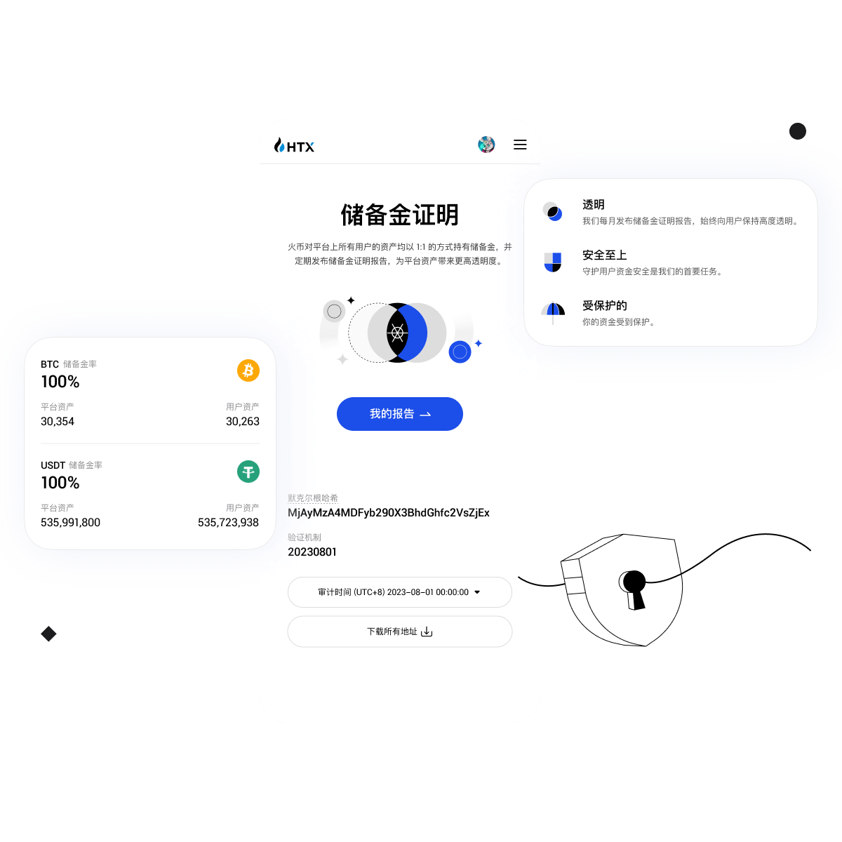 火必对平台上所有用户的资产均以 1:1 的方式持有储备金,并定期发布储备金证明报告,为平台资产带来更高透明度。